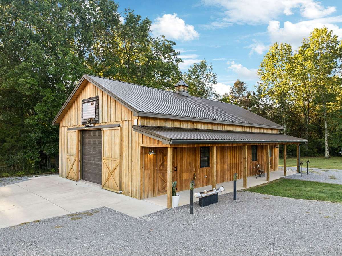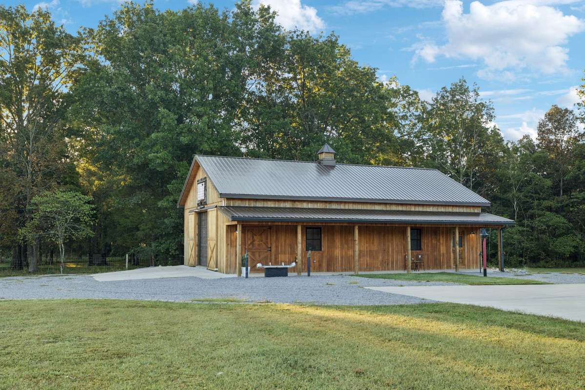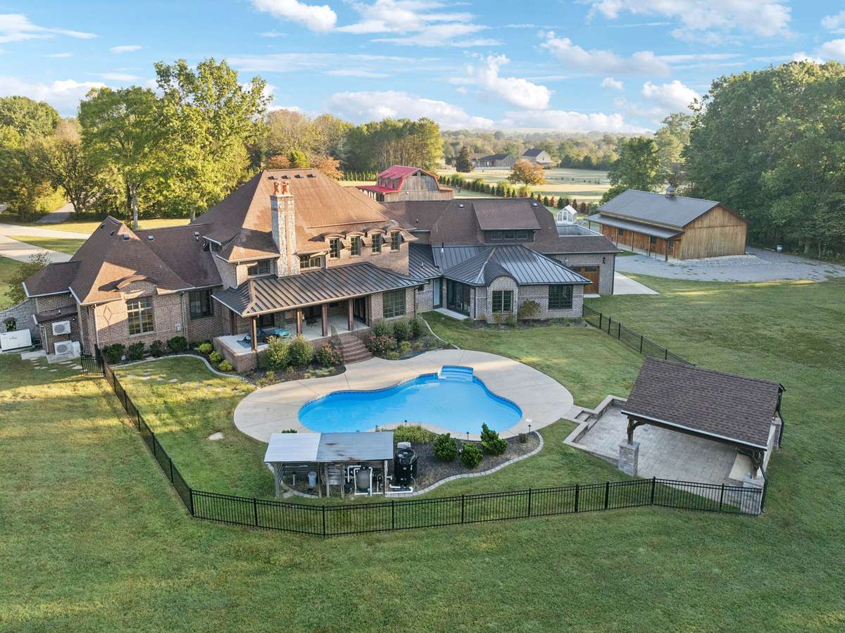 Great family compound and private retreat with many custom upgrades and finishes. This would be a perfect fit for a Nashville entertainer looking for privacy. Two beautiful homes and a shop building, 6. 67 acres of private acreage, convenient to Mt. Juliet and Nashville. The striking main residence includes 5, 684 sq ft, built in 2010. 4 bedrooms, 4 full baths and 2 half baths, expansive living area with fireplace open to a large chef' s kitchen, formal dining room, primary bedroom with on suite bath and walk in closet. A large home office or den area is on the main level, along with a work out room with infrared sauna and adjacent full bath. Secured safe room, whole home generator. Right outside the living area doors offers a family oasis with large in ground swimming pool, motorized screened in porch, full outdoor kitchen with built in grill. The upstairs expansion includes another master suite and underneath is the 4 car oversized garage. The guest house is perfect for family, guests, or musicians retreat/ studio with 1, 556 sq ft, fully renovated in 2021, offers two bedrooms, one bathroom, full kitchen and den area, with a full wrap around porch. 1, 500 sq ft finished barn ( built in 2022) , which could be used as a separate office, man cave or game room, which has central heat & air. This private family compound retreat is the perfect, convenient spot to gather, experience and live in a natural private setting with nature and wildlife.